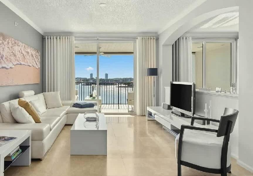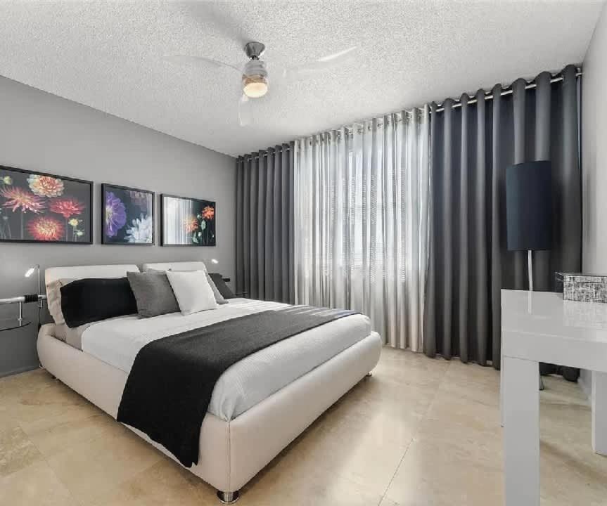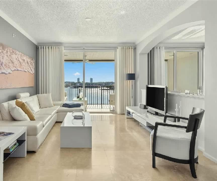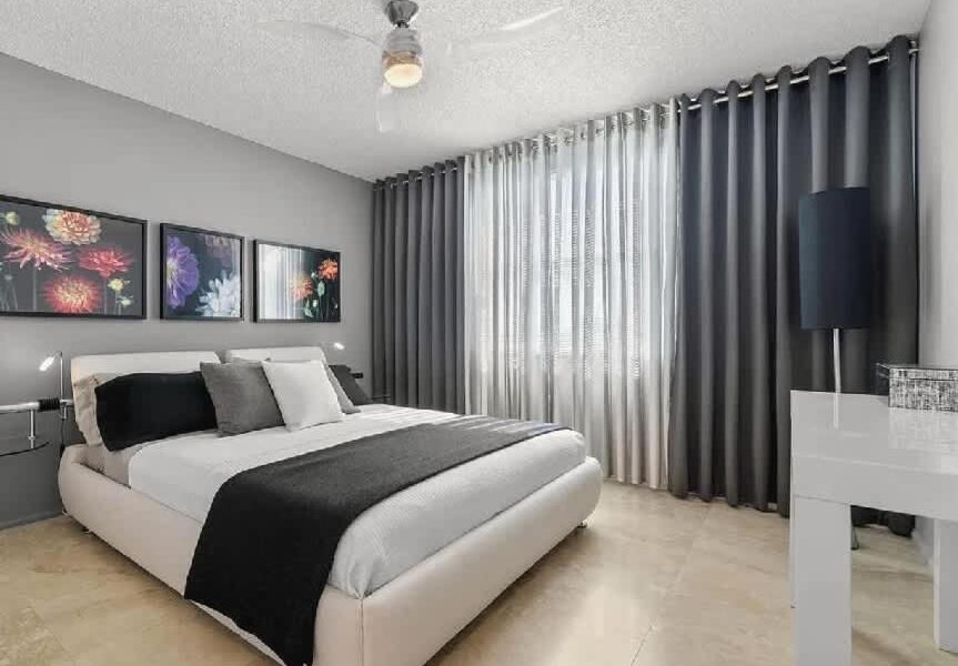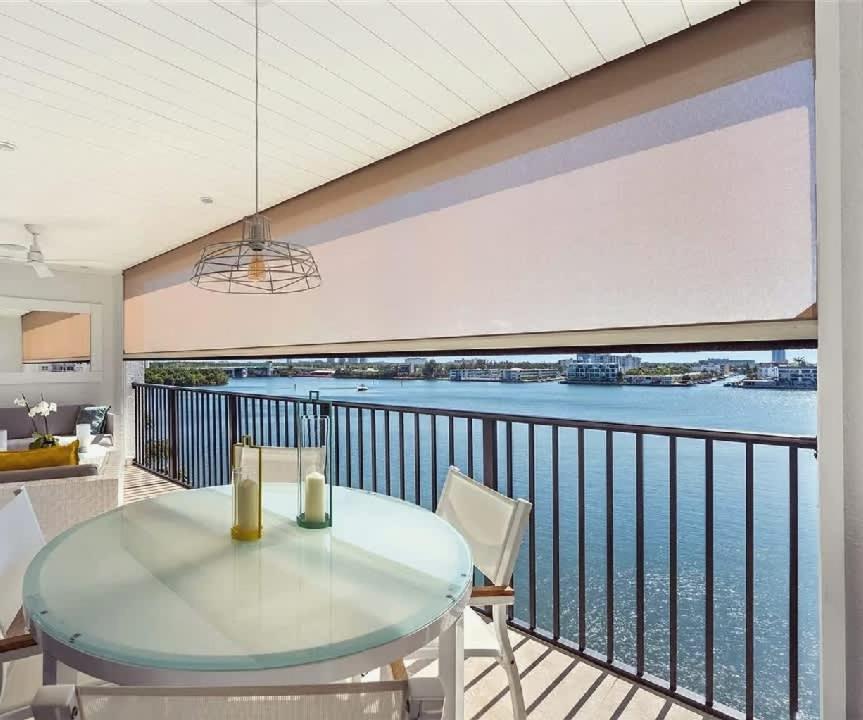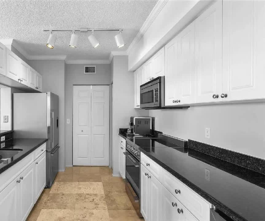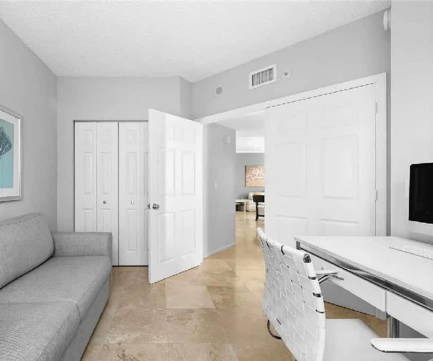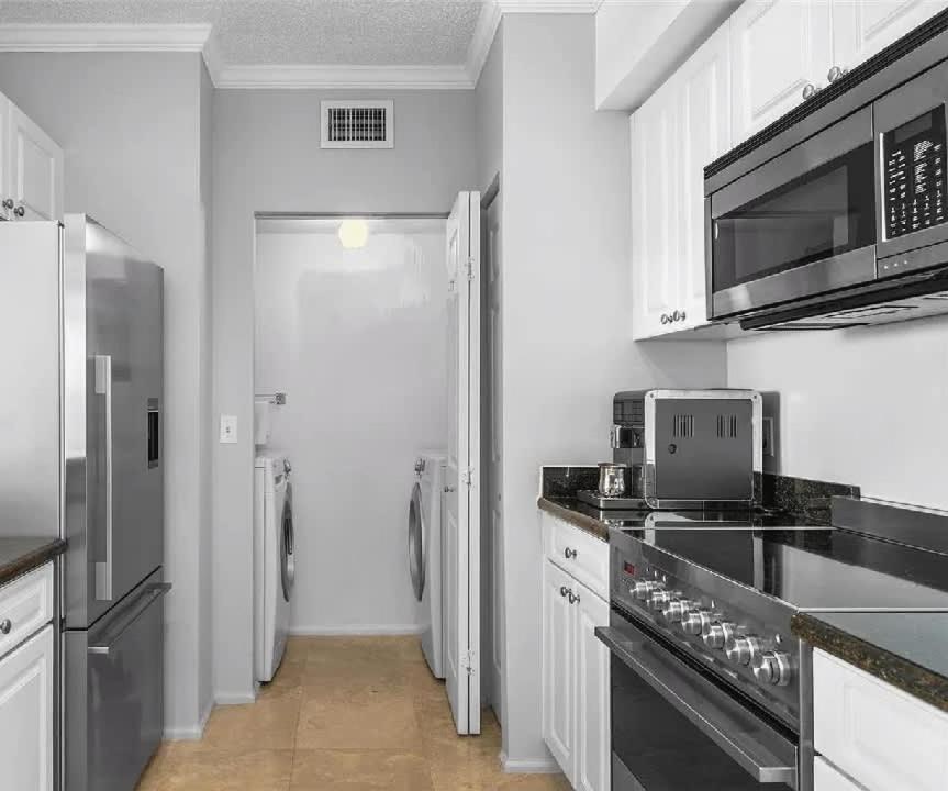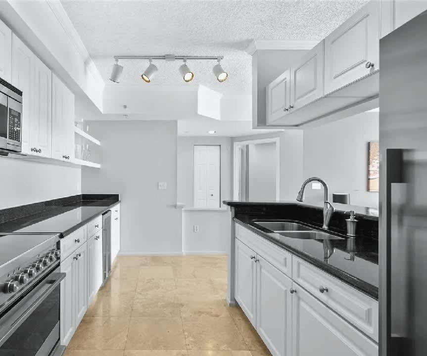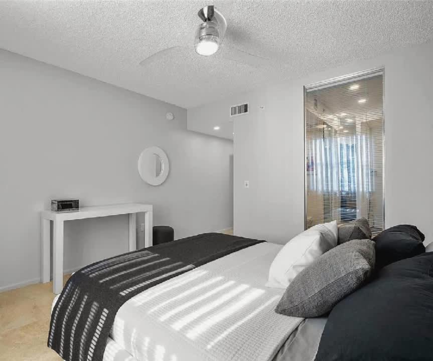 Waterfront apartment offering intracoastal and pool views from every room, with a bright open layout designed for comfortable short-term stays. The interior features tiled living and dining areas, carpeted bedrooms, granite countertops, stainless steel appliances, walk-in closets, and a private balcony overlooking the water. The apartment includes an in-unit washer and dryer and two assigned parking spaces, one covered and one uncovered. Guests have access to a gated building with a heated pool, jacuzzi, fitness center, children’s playroom, and business facilities. Located within a short walk to the beach, as well as nearby restaurants, cafés, shops, and grocery stores, the apartment provides a convenient coastal setting for a Sunny Isles Beach vacation.