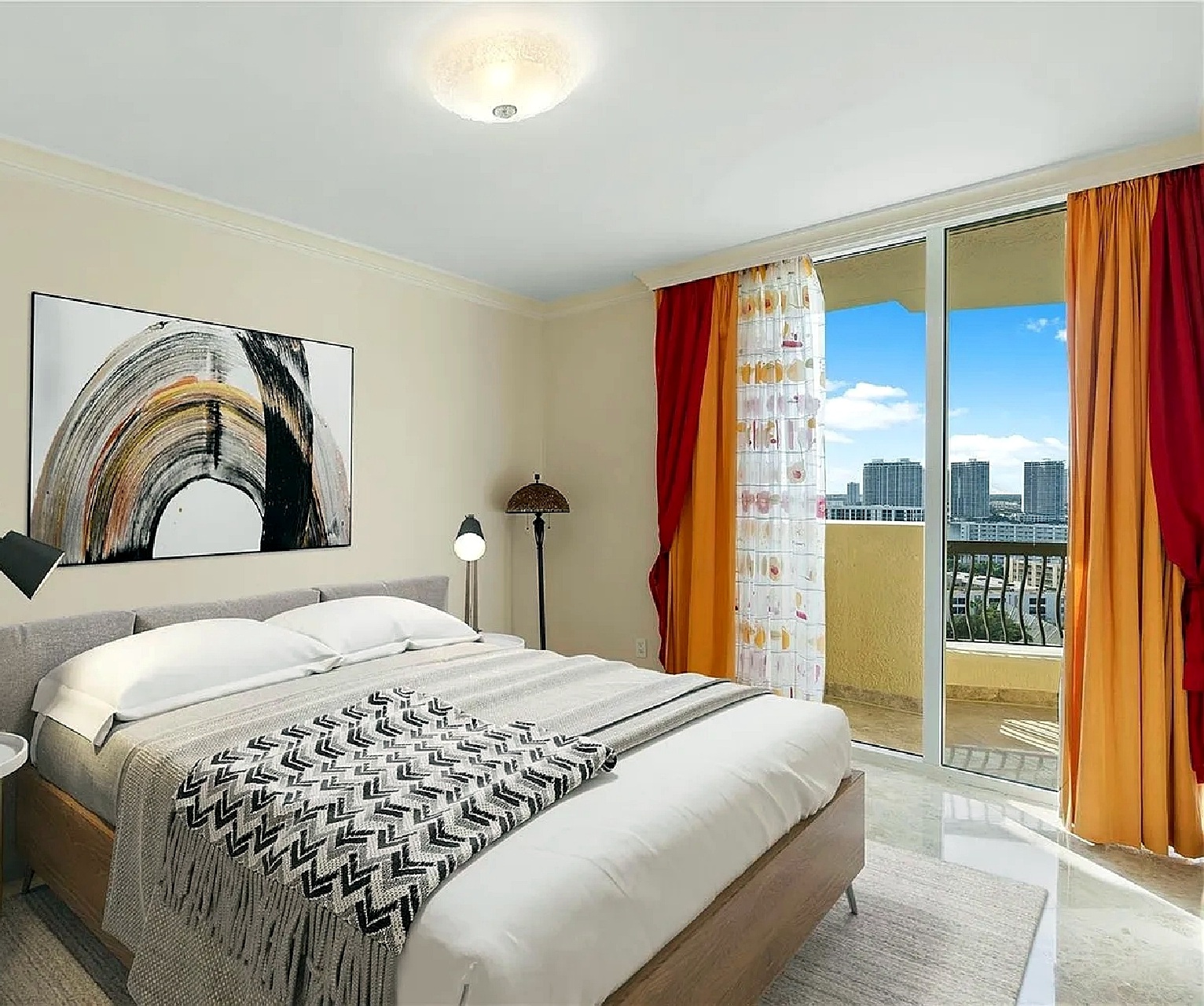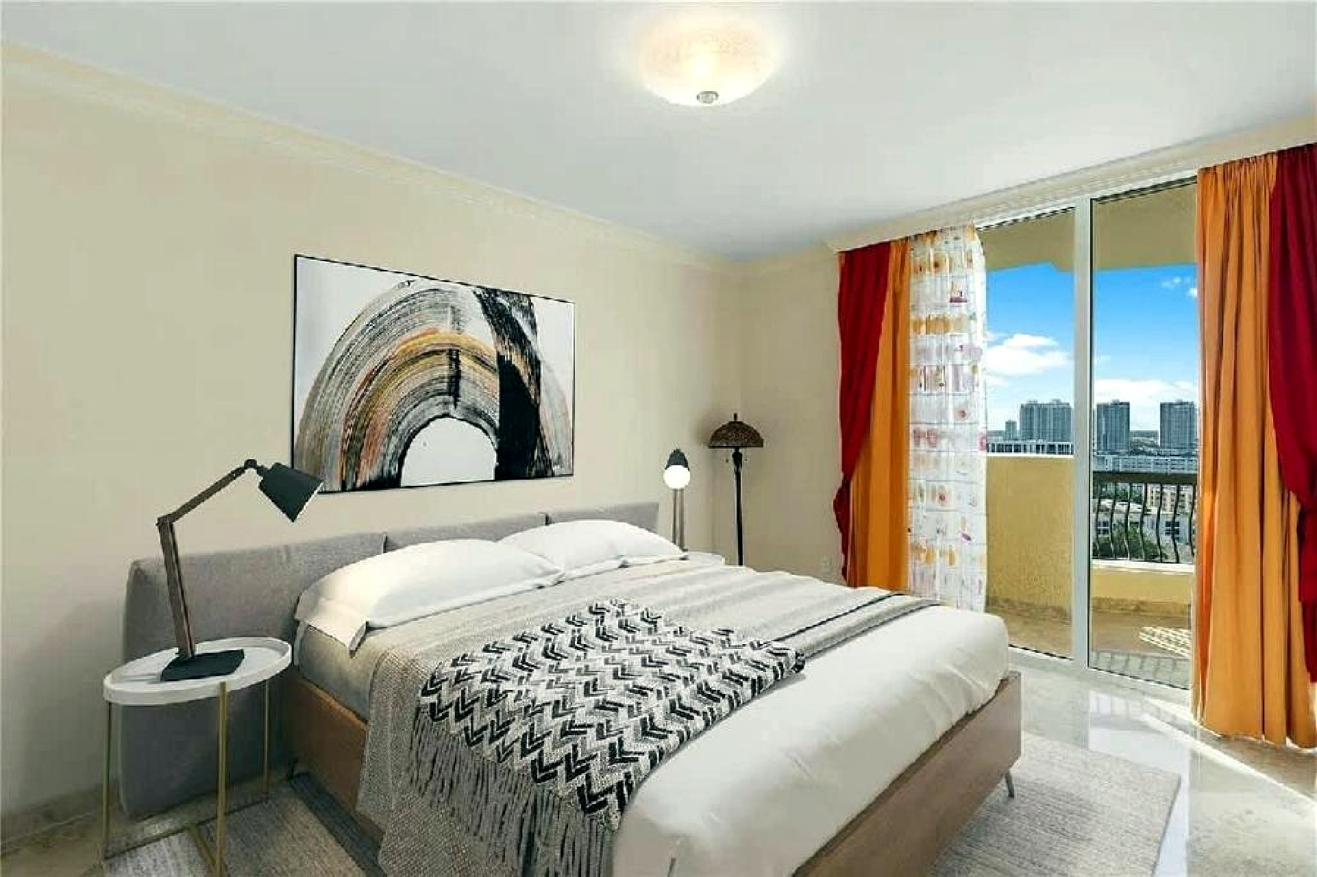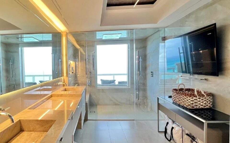 Bright three-bedroom oceanview apartment offering a spacious layout designed for short-term vacation stays, featuring a comfortable living area, a fully equipped kitchen with modern appliances, air conditioning, free WiFi, and an in-unit washing machine. The apartment opens to a private balcony with ocean views and provides natural light throughout the living spaces and bedrooms. Located approximately one minute from the beach, the property offers easy access to the shoreline, nearby dining options, and local attractions, with convenient connections to the Miami Beach Convention Center, Lincoln Road, and surrounding points of interest, making it a practical and well-located option for a Miami Beach getaway.