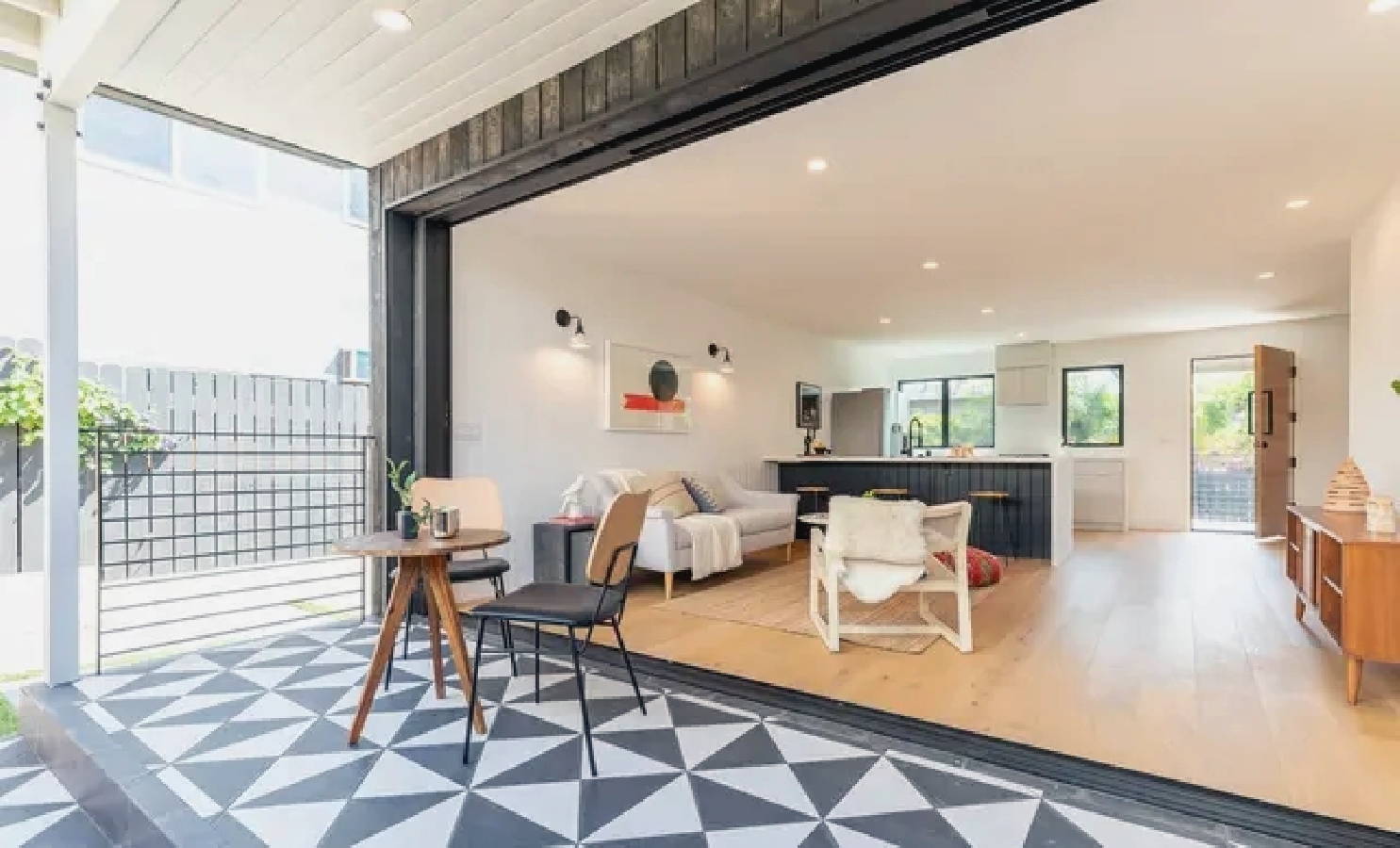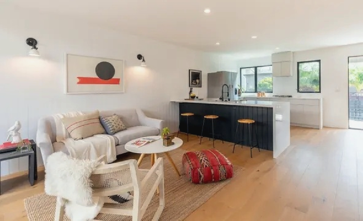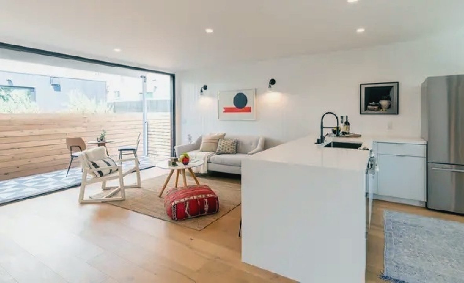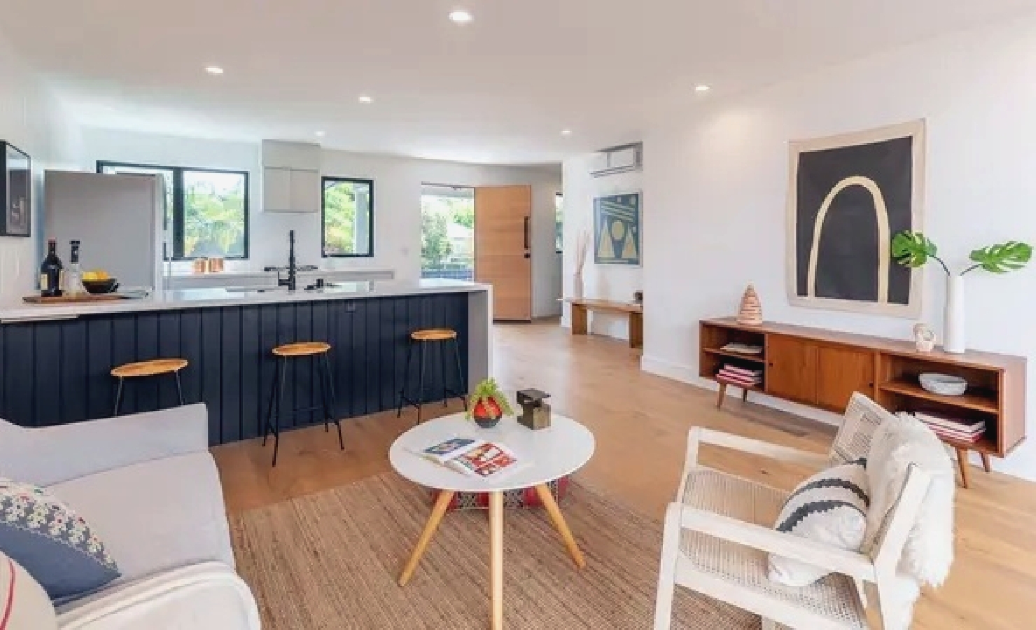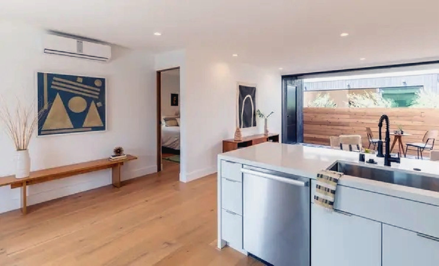 Coastal home offers a bright open-plan layout with comfortable furnishings, a well-equipped kitchen for easy meal preparation, and a private outdoor patio ideal for enjoying relaxed mornings or casual evening gatherings; guests are just a short walk from the beach, local markets, cafés, and trendy restaurants, creating a convenient and inviting getaway that blends comfort with the laid-back charm of Venice for both short stays and extended visits.