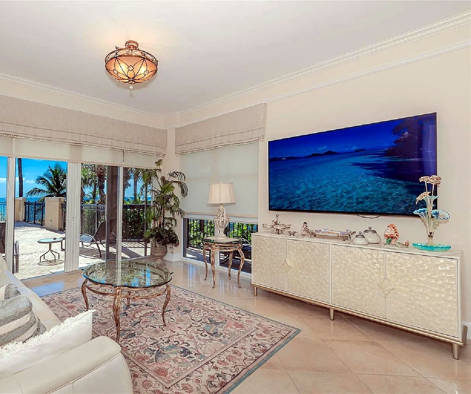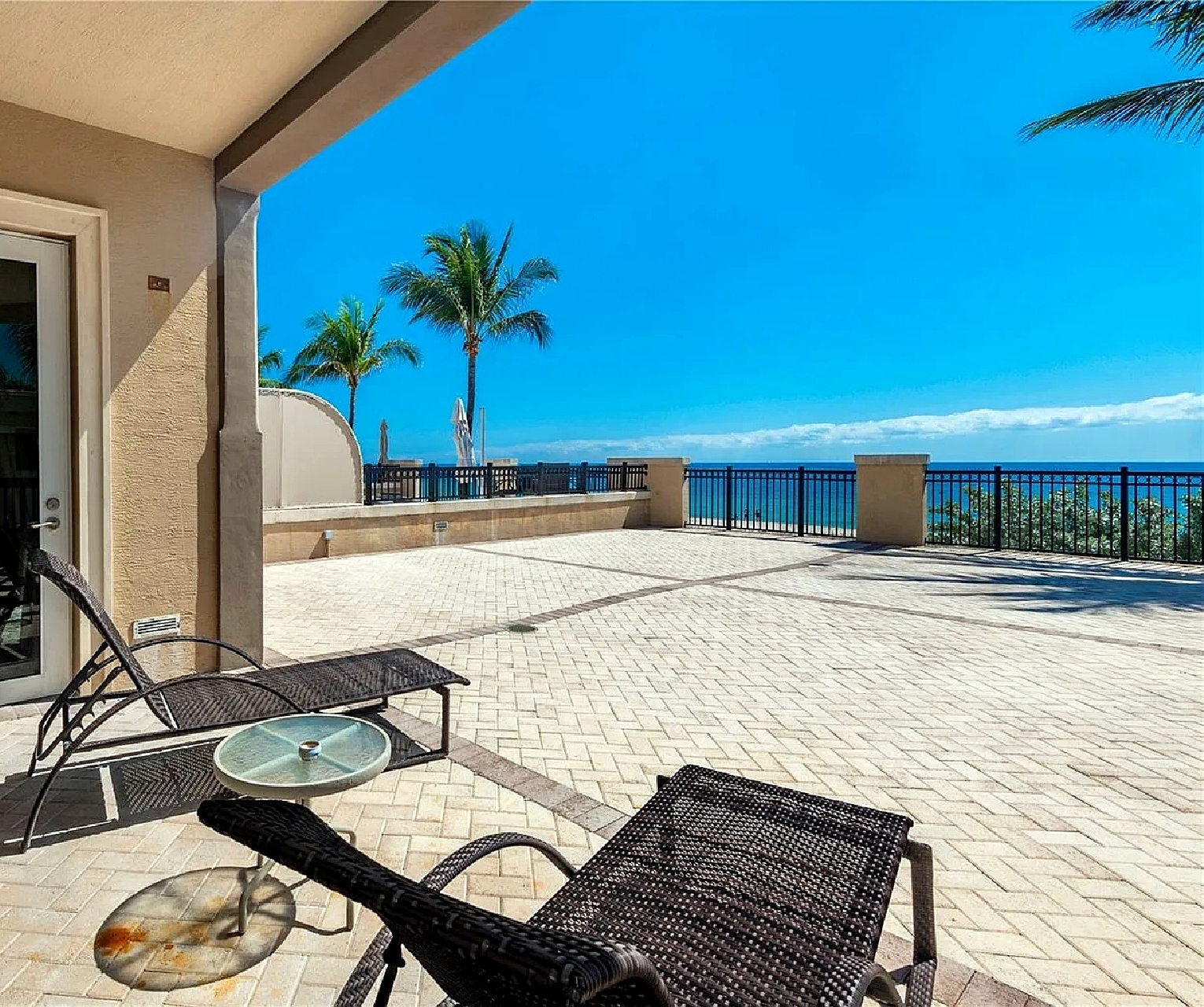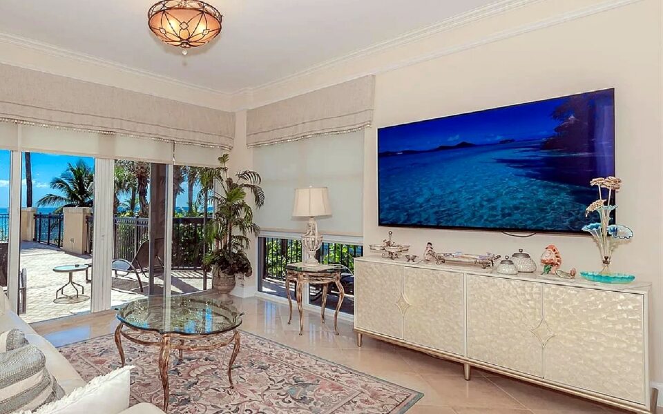 Oceanfront corner residence offering open ocean views and a large wraparound balcony suited for outdoor dining and relaxation during a short-term stay, with a layout that includes two bedrooms plus a den and three bathrooms for added comfort and flexibility. Guests enjoy direct access to a private beach along with shared amenities such as a heated pool, spa, fitness center, cabanas, and an oceanfront clubhouse, creating a resort-style coastal experience. The property is pet-friendly and located within walking distance to nearby dining options, shops, and the pier, making it a convenient choice for a Fort Lauderdale beachfront vacation focused on views, amenities, and walkability.