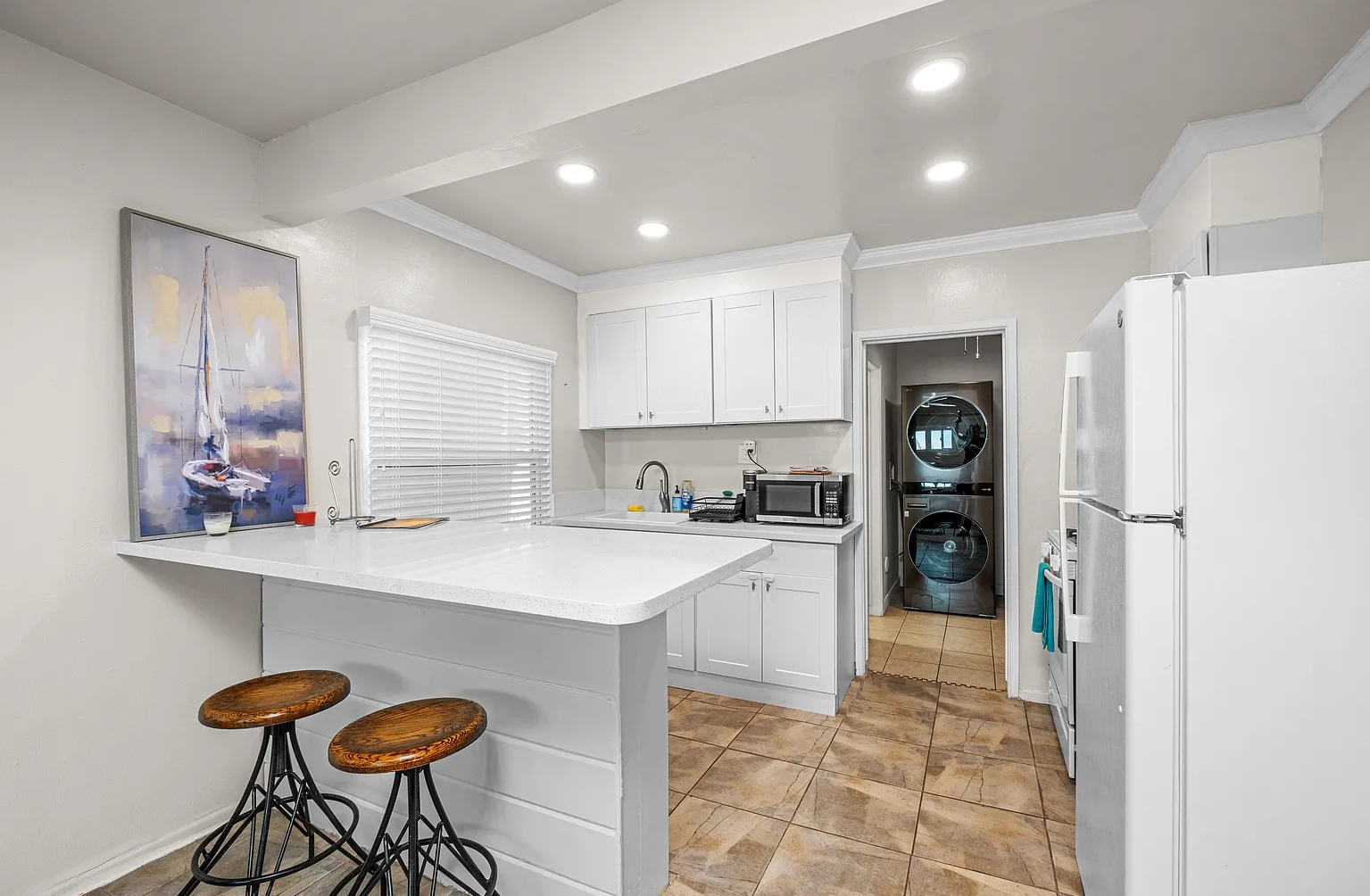Bright and comfortable beachside living just steps from the sand, offering an open and inviting layout with modern finishes and well-equipped amenities designed for a relaxed short-term stay. The interior provides a practical and cozy setting ideal for couples or solo travelers, with living spaces that make it easy to unwind between beach outings. Located in the heart of Hermosa Beach, the home places guests within easy walking distance of the ocean, local dining, boutique shops, and the lively coastal community atmosphere, creating an enjoyable base for experiencing Southern California beach life.